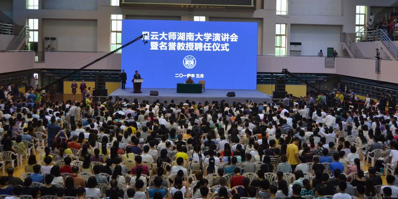 在随后举行的演讲会暨受聘湖南大学名誉仪式上,湖南大学校长赵跃宇为星云大师颁发名誉教授聘书,佩戴校徽。星云大师以“看见梦想的力量”为主旨向近3000名师生及社会人士发表讲演,并回答了学生的提问。