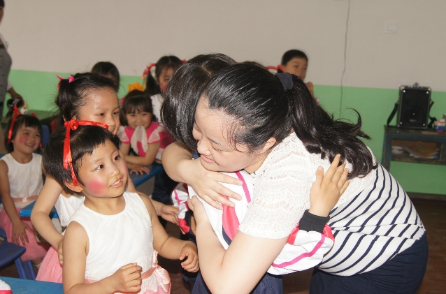 万婴教育机构志愿者与“无妈乡”留守儿童温情相拥