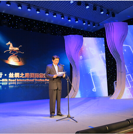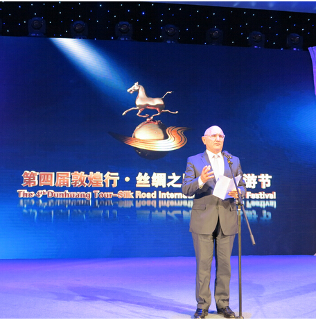 【香港商报讯】记者陈文智报道;6月15日,以“畅游绚丽甘肃,发展丝路旅游”为主题的第四届敦煌行·丝绸之路国际旅游节开幕式在甘肃张掖举行,白俄罗斯、乌克兰、巴林等国家和中国台湾、陕西、甘肃、宁夏等六省区19个丝绸之路城市的代表共同发表了《重振丝路联合发展――丝绸之路城市旅游合作宣言》。甘肃省委书记王三运、省长刘伟平,国家旅游局党组书记、局长邵琪伟,世界旅游业理事会(WTTC)副主席让·克劳德·鲍姆加藤,亚太旅游协会(PATA)前主席安栋梁先后在开幕式上致辞。