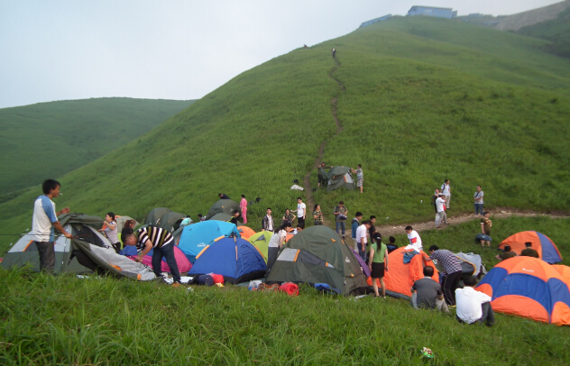据了解,武功山以其得天独厚的万顷高山草甸原自然生态资源优势,将丰富的户外运动项目引进其中,让广大户外爱好者尽情体验户外运动的魅力。此次“2014走进‘中国福山’-消夏露营大会”以“消夏、露营、狂欢”为主题,游客们统一乘坐景区观光车直达1400米山腰,再沿不同的登山路线向1918.3米的金顶行进,晚上在高山草原上搭帐篷露营,第二天清晨观看武功山云海间的日出。一望无垠的绿色草甸和清新的空气,让人流连忘返。