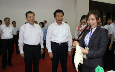 在内蒙古(呼和浩特)台湾名品博览会展厅,王君首先走到台湾传统产业展示区“知足常乐馆”,拿起展台上造型别致、时尚新颖的蛋糕状小毛巾,仔细询问制作工艺、销售价格,对这种在日用品中融入创意元素的做法表示赞赏。高山茶是台湾的著名特产,王君走进“台湾名茶区”,端起一杯刚刚沏好的热茶饶有兴致地品味着,并同参展商家亲切交谈,详细了解高山茶的生长习性、口味特点,鼓励参展商多带一些好的产品来内蒙古开拓市场。在“台湾精品馆”,3D裸眼电视完美呈现了立体效果,给人一种身临其境的现场感;一款名为“兜风站”的轮椅,既可以借助电力随意行走,还可以帮助体障者轻松地站立起来。王君兴致勃勃地驻足观看,对台湾高科技的实力和人性化的创意表示赞赏。“海瑞贡丸”的摊位前,顾客熙熙攘攘,踊跃购买品尝来自宝岛的美味;健康美丽形象馆内,众多关心健康美丽的男男女女争相体验生物医药科技产品的神奇效果;还有米罗生活馆里展示的产自阿里山的木雕和桧木精油,精密机械馆展示的台湾100多项机械产品模型,科技体验馆展示的用台湾七彩玉制作的葫芦瓶、观音瓶、乾坤球……各色商品琳琅满目,前来选购商品的宾客络绎不绝。王君一边走一边看,认真观看一个个独具特色的台湾产品,仔细询问产品的生产销售、科技创新等有关情况,对这次博览会的策划创意、展会规模、布展形式等给予充分肯定。