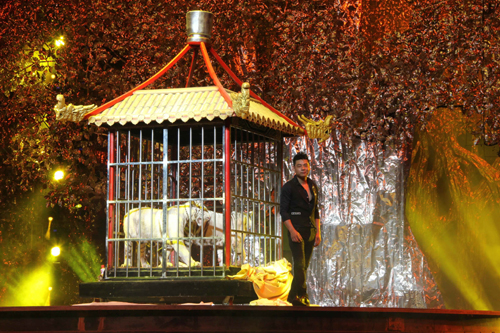 常规魔术演出中变羊、变马、飞鸽、捉兔太常见了,汪小魔却觉得这样的演出在舞台上不够刺激,缺乏张力。为了增强魔术表演的冲击性与张力,汪小魔选择了与众不同的猛兽白虎来进行表演。