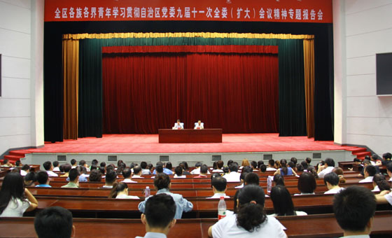 【香港商报讯】记者王一伟 蔡文勇报道:为进一步做好自治区党委九届十一次全委(扩大)会议精神的学习宣传贯彻工作,自治区团委、青联于6月26日下午,组织召开全区各族各界青年学习贯彻自治区党委九届十一次全委(扩大)会议精神专题报告会。来自区直机关、高校、企业、军警公安等系统的近千名团员青年参加报告会。自治区党委副秘书长、政研室主任、党委改革办常务副主任王焕承同志作报告。自治区团委书记常青主持报告会。
