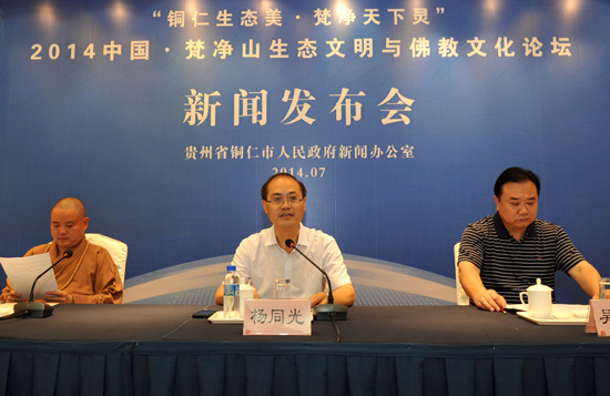 【香港商报讯】记者黄庆松报道: 7月5日,记者从贵州省铜仁市举行的 “2014中国·梵净山生态文明与佛教文化论坛”新闻发布会获悉,7月11日至13日“2014中国·梵净山生态文明与佛教文化论坛”在贵州省铜仁市梵净山举行。