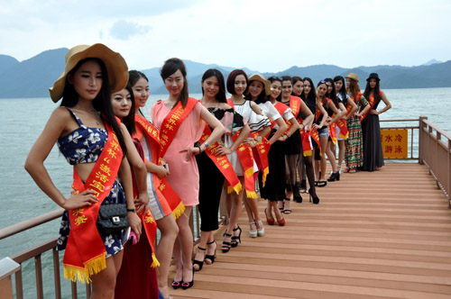当天上午,16位足球宝贝身披世界杯16强球队战袍,在太平湖风景区角逐冠亚季军。
