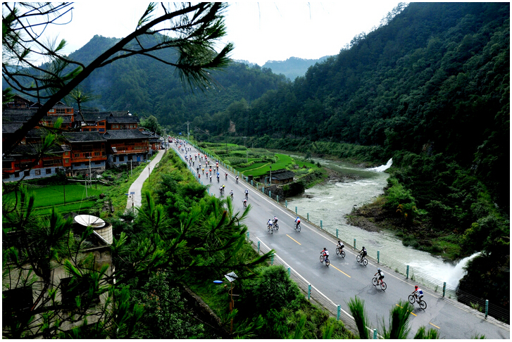 比赛选手经过固鲁苗寨赛道.