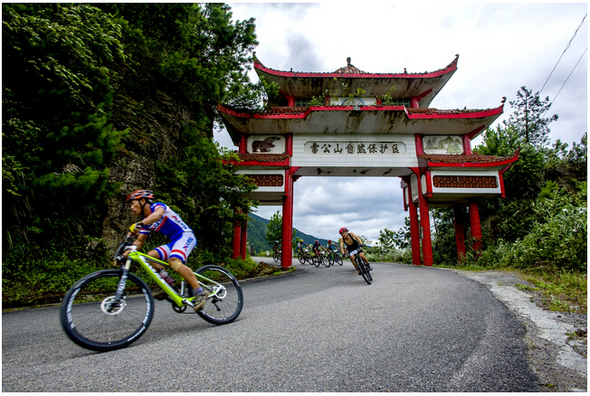 比赛选手经过雷公山自然保护区赛道
