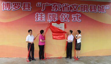 【香港商报讯】记者卢伟,通讯员谢思雄、刘海翔报道:7月22日,博罗县举行“广东省文明县城”挂牌仪式。据悉,该县2013年底以全省总分第一名的好成绩成功摘取了“广东省文明县城”金牌。下来该县将以此为新起点,乘势而上,争创“全国文明县城”。