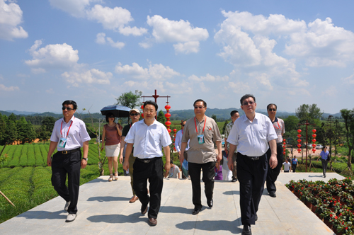 【香港商报讯】 记者 黄庆松 通讯员 罗国波、彭仕江 报道:7月23日,出席2014世界侨商贵阳会议的200余名侨商走进贵州遵义湄潭,感受湄潭茶乡丰富的茶文化,领略湄潭秀美的新农村,共叙友谊、共谋发展。贵州省委统战部常委副部长陈庆义,遵义市委副书记陈梓泽,湄潭县委书记魏在平,县长李勰等相关省市县领导陪同参观。