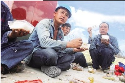 受灾群众菜肉不缺 电网工人快餐速战速决 乡镇干部每天下乡