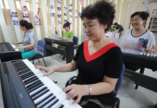 廊坊市广阳区六景社区居民在免费学习电子琴