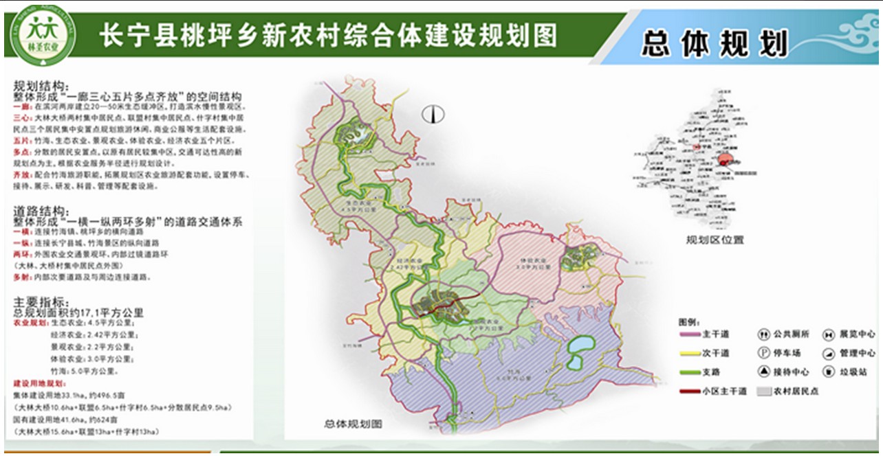 长宁县在桃坪乡投资打造旅游观光、休闲娱乐等为一体的农业景观公园,依托蜀南竹海,服务游客,同时满足各种人群的需求,充分发挥休闲、娱乐和旅游作用,不断地促进当地农民增收。在公园的规划设计中,还将长宁特有的文化特色融入到景区之中,更加注重满足各种儿童需求的综合开发项目。整个开发工程项目建设,分为3期建设。第一期重点打造盆景、中央湖、观花观叶3个景区和相关广场以及商业街区和服务中心。二期和三期打造观鸟区、儿童游乐场、盆景展览区和旅游接待中心等建设项目。