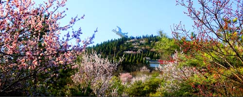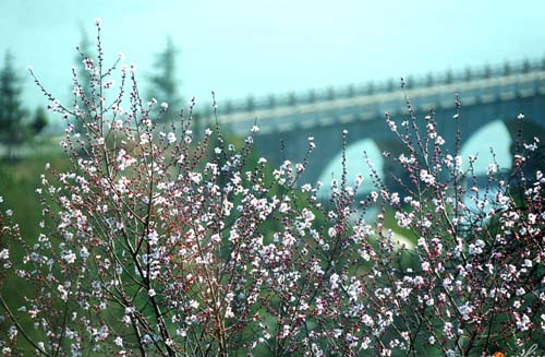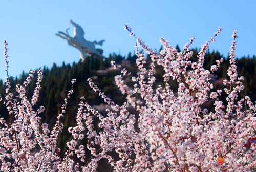 登山而上,满目花开,回首处,白马飞腾,桃花烂漫。桃花开在白马寺山上,一片片的,一簇簇的,形成了桃花源。远处眺望,小桥流水,花蕾嫣红,走着走着就走入这梦里桃花源,可不知是否有伊人赏花?花开的正旺,时光凝固了这属于心中的瞬间,藏在心中的桃花绽放。忽隐忽现的时光,花非花,在每个人的心中驻留又逝去。桃花在翠绿中绽放,漫山遍野,想起了感情的因果,原来桃花是一种中性的花,在感情生活中,桃花本没有定义,只是心境不同,但不管怎样,桃花还是桃花,还是那样笑迎春风。