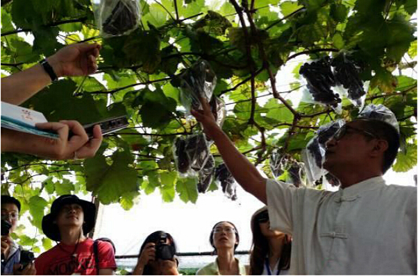 台湾农庄主黄国安推介农庄里自己研发的新型葡萄品种