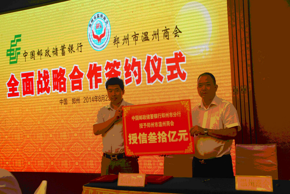 中国邮政储蓄银行郑州分行为郑州温州商会温州商会授信30亿元.