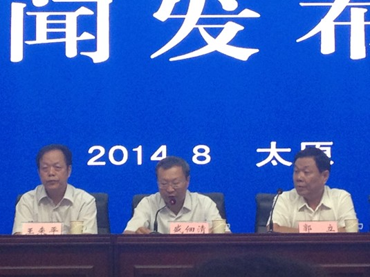 从左至右依次为:山西省商务厅副厅长王来平,山西省省政府副秘书长盛佃清、郭立