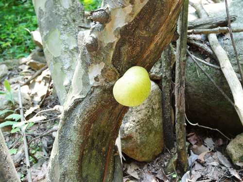 该群落分布在沟谷及两边的峭壁上,混生于豹皮樟、雷公鹅耳栎、白檀等常绿落叶混交林中,面积约15亩,海拔660--680米之间,坡度5--60度,总株数189株,占林分中乔木总株数的10%左右,其中最小的胸径1厘米,树高3米,最大的一株胸径9厘米,树高8米,一些树上还挂了不少虫瘿,颇为醒目。