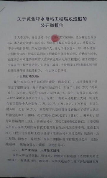 据举报人李文华、卢世涛反映,自2014年4月前,他们曾多次实名向业主、承建单位及政府部门举报黄金坪电站工程腐败造假,但是并未得到任何单位的回复,最后他们才决心向社会公开实名举报。本报在5月初接到李文华、卢世涛的实名举报信后,从5月13日开始陆续向设计单位、监理单位、业主方发去采访函,但是所涉单位集体失语。本报于5月底和甘孜州委、康定县委取得联系。后由康定县组织召开此次座谈会。