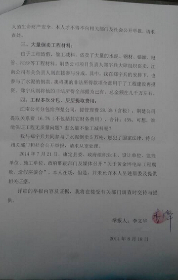 图为李文华实名举报信内容二