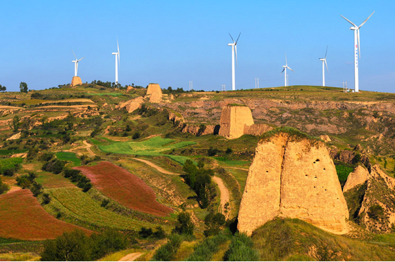 沿着蜿蜒曲折的杀虎口古长城向东远眺,映入眼帘的是满山白帆片片高耸云天的“大风车”,从东北到正东,到西南再到西北,塞上绿洲右玉正被连绵不绝的环县城风车群围起来,形成了一道道亮丽的风景线。生态立县,绿色发展。右玉人建起了一个颇具规模的清洁能源产业链,绿色的右玉正全力朝打造绿色新能源示范基地县进军。