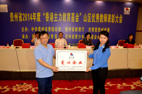 [香港商报讯] 记者 黄庆松 报道:9月10日,在第三十个教师节到来之际,2014年度‘香港主力教育基金’贵州山区优秀教师表彰大会”在贵阳隆重举行。香港主力电器制品有限公司向贵州省青少年发展基金会捐赠100万元人民币,用于表彰奖励100名贵州山区优秀教师及资助600名贵州贫困高中学生。贵州省人民政府副省长陈鸣明等领导出席。
