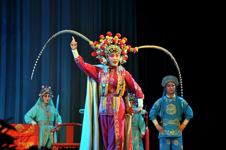 9月11日晚,山西省新绛县蒲剧团演员在表演蒲剧折子戏《通天犀》。为充实“戏曲惠民欢乐百姓”活动,山西运城市于8月28日启动为期一个月的折子戏大比拼,全市19个市县剧团和民营剧团登台献艺,弘扬蒲剧艺术,丰富群众的文化生活。活动还推出“一元票价”,最大程度惠及百姓。