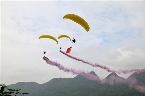[香港商报讯] 记者 黄庆松 报道:9月20日,2014年中国·安顺坝陵河大桥跳伞国际邀请赛暨2014中国贵州·安顺黄果树瀑布节在黄果树国家级风景名胜区坝陵河大桥拉开帷幕。