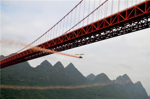 35名选手挑战黔安顺世界最高坝陵河大桥低空跳伞