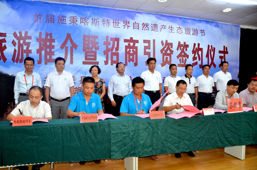 县政府与各企业和旅行社签订招商引资项目投资协议.