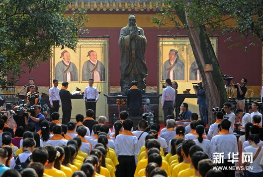 当日是伟大的思想家、教育家、哲学家、儒家学派的创始人孔子诞辰2565周年纪念日,全国多地举行隆重的祭孔大典,各界人士参与祭拜。