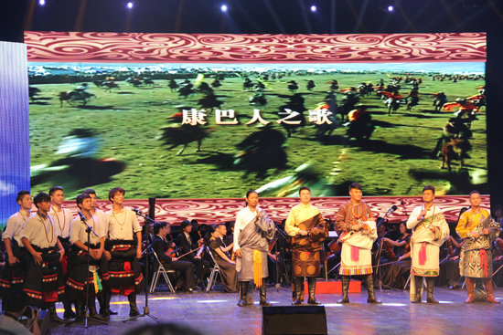 【香港商报讯】记者宋贵伦、郭代勤报道:作为庆祝新中国成立65周年的文化重头戏,9月30日晚,由甘孜州委、甘孜州人民政府主办的“圣洁甘孜·2014藏族经典音乐作品鉴赏会”在成都锦城艺术宫上演。