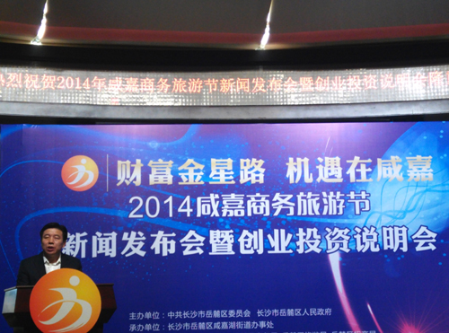 [香港商报10月16日讯 ]记 者 张 俊通讯员袁鑫欣 10月15日上午,“财富金星路,机遇在咸嘉”——岳麓区2014年咸嘉商务旅游节新闻发布暨创业投资说明会在茉莉花酒店召开,开幕式暨咸嘉狂欢夜定于10月24日在步步高广场举行。
