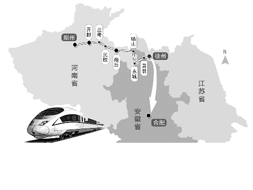 目前,郑州到合肥只有普快,最快也需要7小时35分钟,到明年年底,从郑州坐高铁在徐州中转,再坐高铁到合肥最快不超过3个小时。