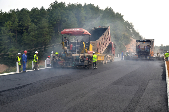 “截至目前,松铜高速已有接近三分之一的高速公路具备了通车条件,二分之一的路面已基本形成,目前全线有5000多名工人正在前线展开大决战。按照通车目标倒排工期,桥隧必须在10月底以前结束,工程建设已超既定目标任务完成,确保在今年12月26日实现通车运行。”贵州公路集团松铜公司总经理黄任远向记者介绍说。