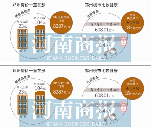 第一,行情总体比全国市场热,比如从房地产开发投资同比增幅、商品房销售同比增幅等数据看,明显比全国市场要好。这说明郑州的楼市环境更健康。
