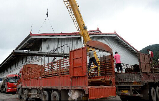 在云南磨憨口岸,一家物流公司的员工在装运出口到东南亚的货物(10月23日摄)。
