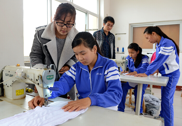 河北東光縣特教學校設有2個聾啞班、1個智障班,在校學生60多名。自2013年起,為了讓殘疾學生掌握就業本領,東光縣特教學校為適齡殘疾學生開設了縫紉、泥塑、剪紙等就業輔導課程,邀請專業人士定期進校輔導,幫助特教學子更好地融入社會。
