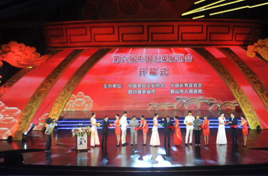 【香港商報訊】記者梅超報道:10月31日上午9時,由中國食品工業協會、中國長壽促進協會、四川省農業廳、眉山市人民政府共同主辦的第六屆中國泡菜展銷會在大文豪蘇東坡的故鄉——四川眉山市隆重拉開帷幕。全國政協副主席劉曉峰、農業部總農藝師孫中華、商務部駐成都特派辦副特派員武雪峰、中國食品工業協會副秘書長杜荷、中國長壽促進會會長稅勇、四川省人民政府副省長陳文華、四川省政協副主席羅布江村等領導出席開幕式。四川省農業廳廳長任永昌主持開幕式。全國政協副主席劉曉峰宣布第六屆中國泡菜展銷會開幕。