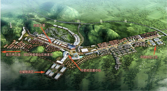 整個城鎮規劃區為“三心兩軸兩區兩組團一元”的基本結構。即:三心——即教育中心、行政中心、療養中心;兩軸——依托現狀施余公路形成鎮區主要發展軸和結合南北向主要街道形成城鎮次要發展軸;兩區——行政商務科研片區和商貿服務片區;兩組團——以現狀建成區形成老城綜合組團;以中藥材交易中心形成的商貿服務片區;一元——以物流倉儲形成的物流園區。與之配套的鎮域公共服務設施、綜合交通、生態環境保護、空間管制、綜合防災等也在同步實施。