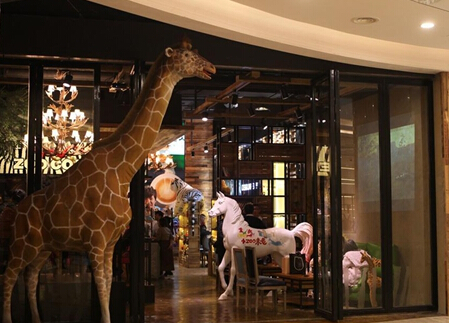威猛的老虎,可愛的長頸鹿,頑皮的大猩猩……這些原本應該出現在動物園裏的動物,卻在鬧市中“出沒”,茂密的植被讓人仿佛置身熱帶雨林。近日,重慶商圈某咖啡館仿佛動物園,引年輕人熱追。 劉渝 攝