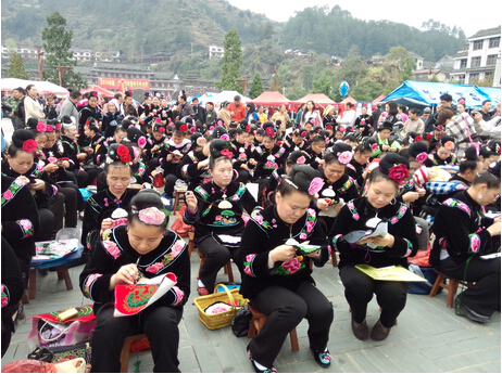 據了解,本屆刺繡大賽從九月份開始籌備,來自雷山縣8個鄉鎮的1000名繡娘經過海選后,前百強繡娘進入決賽。大賽采用統一的天鳥、飛龍、鮮花圖案,統一的平繡、縐秀、雙針秀的刺繡方法進行評選爭奪“十佳繡娘”稱號。