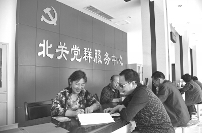 新野縣漢城街道北關社區服務黨群服務中心人員為群眾解疑答惑。王冬安 攝