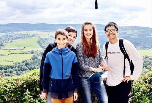 徐江軍(右一)在比利時和當地人合影