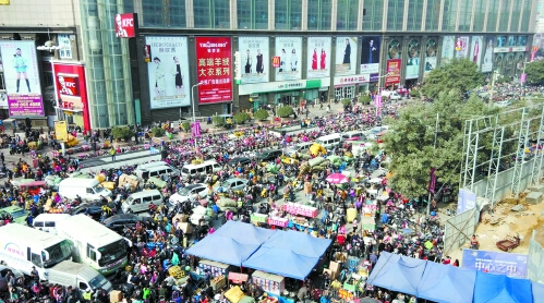 在錦榮商貿城和銀基廣場前,停滿了電動車和面包車。“線下和線上搶客戶這個月最厲害。冬季銷售旺季的開始,外面進貨的人就是生動的寫照。”錦榮商貿城相關負責人滕井星稱。
