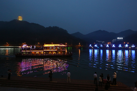 位于黄山市中心城区的4A景区新安江滨水旅游景区夜景.