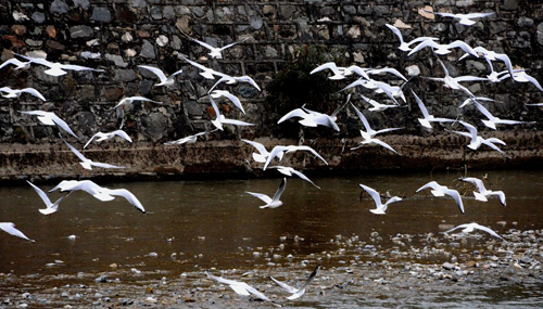 【香港商報訊】記者梅超、通訊員劉彥榮、馮義香報導:“這是啥咋鳥?嘴是紅的,鴿子不像鴿子的······”近半月來,四川阿壩州九寨溝縣城境內的白水江江面上出現成群結隊的白色小鳥,開始只有五六隻,後來越來越多,最多時達上百隻。市民們路經時都不禁駐足欣賞一會兒,有的拍照,有的錄影,呈現出一幅人與自然和諧相處的生動畫面。