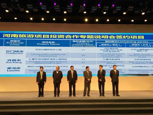 【香港商报讯】记者吴正豪报道:作为2014中国(郑州)世界旅游城市市长论坛的主题活动之一,郑州航空港经济综合实验区及河南旅游项目投资合作专题说明会11月16日在郑州国际会展中心召开,会上共成功签约60个旅游项目,总投资额999.9亿元,其中企业投资项目34个,签约总金额884.3亿元;银行与旅游企业融资项目26个,签约总金额115.6亿元。郑州市签约总投资额126亿元的签约项目也在会上成功签约。