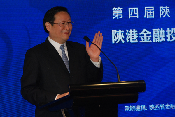 【香港商報訊】記者傅博、王寶雲、閆欣報導:第四屆陝粵港澳經濟活動周主要活動之一的陝港金融投資服務業合作交流懇談會,19日上午在維港灣仔萬麗海景酒店舉行。陝港金融界企業從陝西絲綢之路經濟帶新起點、滬港通等機遇縱論陝西發展及陝港金融合作。陝西省常務副省長江澤林在大會上致辭,介紹陝西省情及金融界發展,邀約港商赴陝發展。
