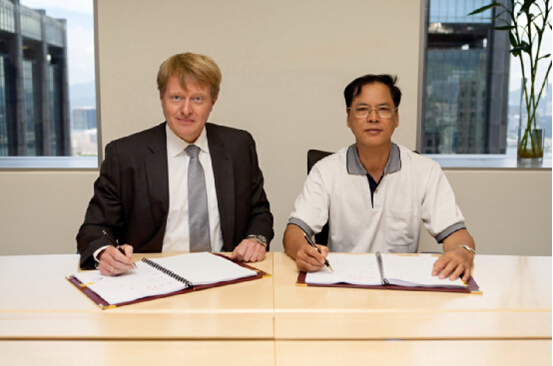 法蘭克福展覽亞洲控股有限公司董事總經理鮑思豐與廣東省玩具協會會長李卓明(右)簽約合資成立“廣州力通法蘭克福展覽有限公司”。