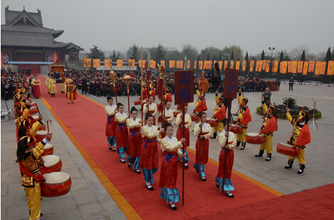 千余名來自山東、河北、河南等省市的的大槐樹移民后裔代表會聚洪洞大槐樹,以傳統民俗文明祭祀祖先